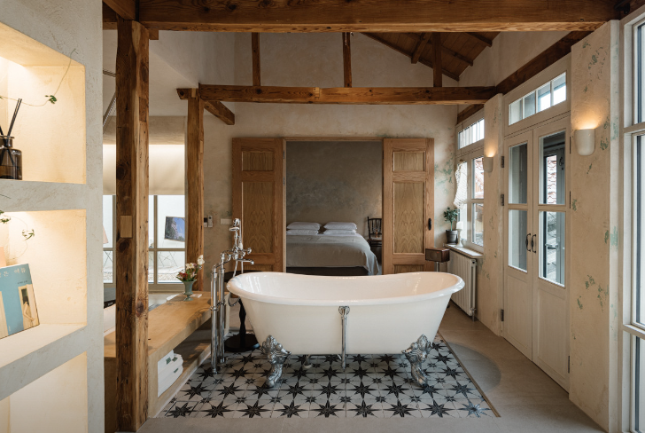 스테이 아래 : 한옥의 뼈대에 유럽의 감성을 더한 독특하면서도 멋스러운 스테이예요. 춘천의 한옥 펜션에서 유럽의 감성을 느끼실 수 있어요.