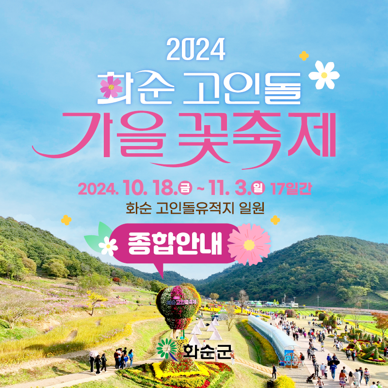 화순을 가을에 방문해야 하는 이유 중 하나는 바로 ‘화순고인돌 가을꽃 축제’입니다. 매년 9월부터 10월 사이에 열리는 이 축제는 고인돌 유적지 일대가 아름다운 꽃밭으로 변신하는 모습을 볼 수 있습니다. 2024년 올해에는 10월 18일부터 11월 3일까지 화순 고인돌유적지 일원에서 축제가 펼쳐집니다. 형형색색의 꽃들이 고대의 고인돌과 어우러져 독특한 경관을 만들어내며, 관광객들은 이곳에서 사진 촬영과 더불어 다양한 체험 프로그램을 즐길 수 있습니다. 특히, 고인돌이 주는 역사적 의미와 함께 자연의 아름다움을 동시에 느낄 수 있는 특별한 경험을 제공합니다.